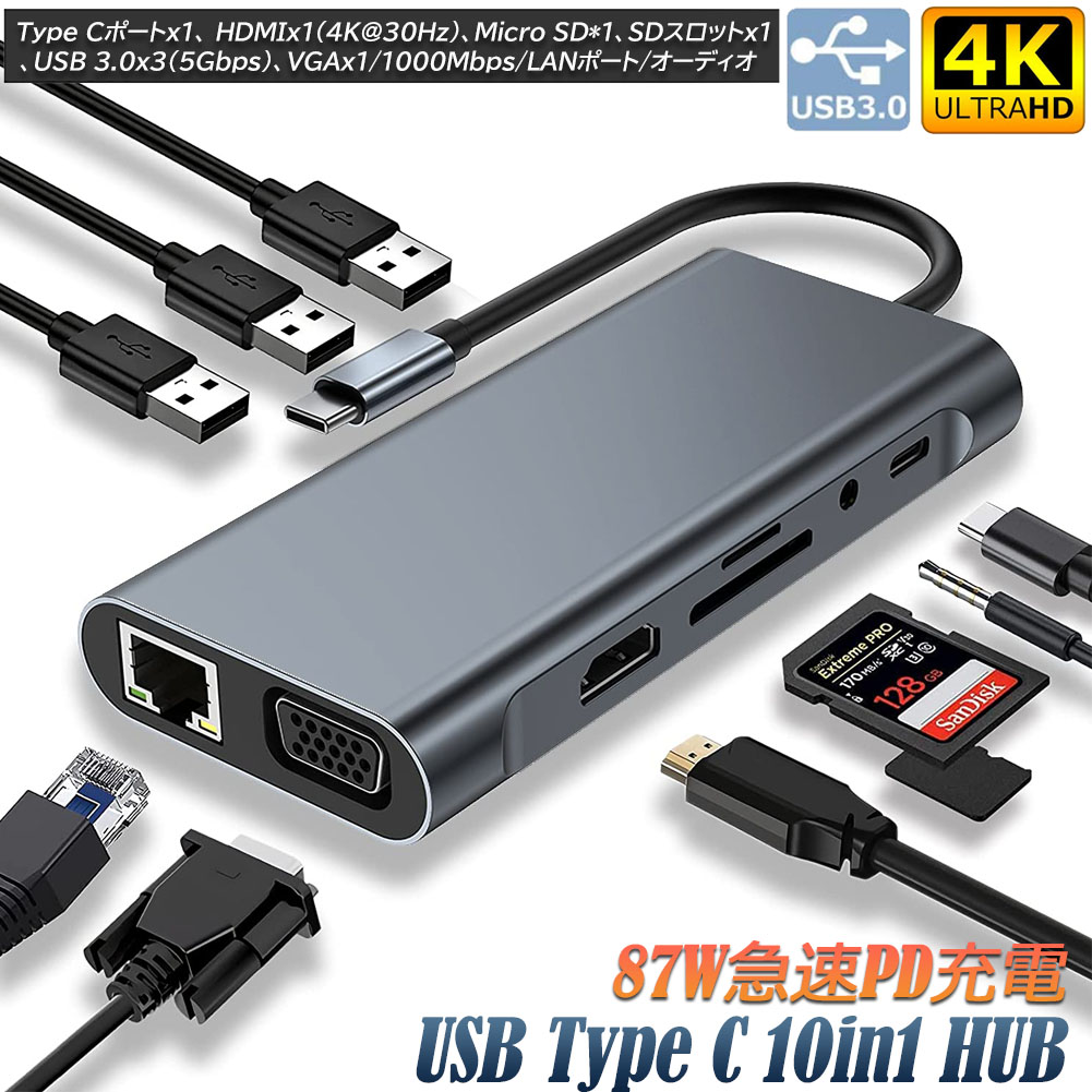 【複数のディスプレイに接続】1つのHDMIポートと1つのVGAポートの併用により、1つのディスプレイに接続することが可能です。HDMIポートは最大4K(3840*2160P@30Hz)、VGAポートは1920*1200P/60HZのデバイスとモニターに対応。※拡張モード対応できません。HDMIとVGAが同時に出力した場合は、1080Pになります。※ご注意:HDMI出力ポートを使用するには、デバイスのUSB-Cポートが出力対応可能でなければなりません。※本制品はlan経由のネットワーク接続に対応しており、wifi経由の接続には対応していません。