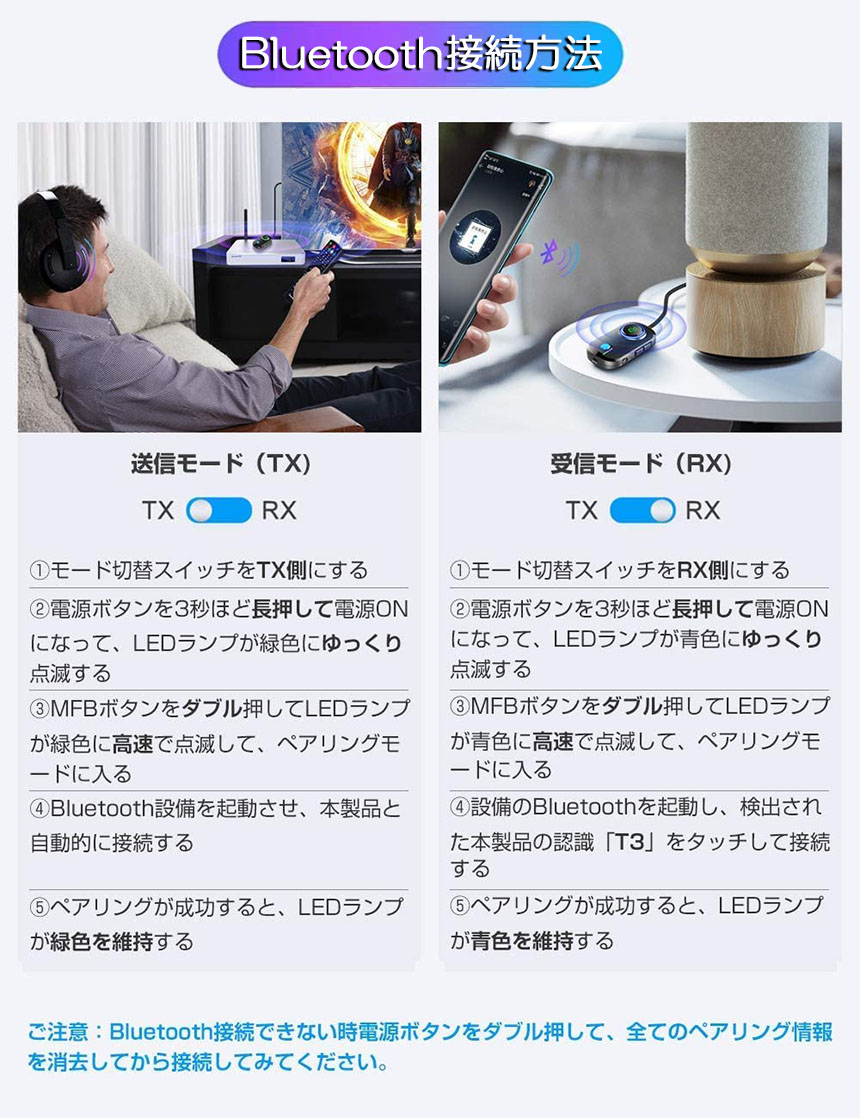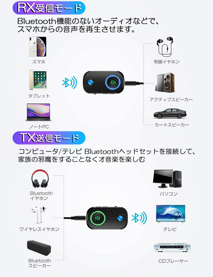 【一台三役】Bluetooth5.0トランスミッター&レシーバーは送信 /受信 /音声アシスタント(ハンズフリー通話)3 in 1 のBluetooth送信・受信機です。本機があれば、ワイヤレス接続非対応のCDプレーヤーなどのデバイスを、Bluetooth対応機器としてワイヤレスで使用できる。