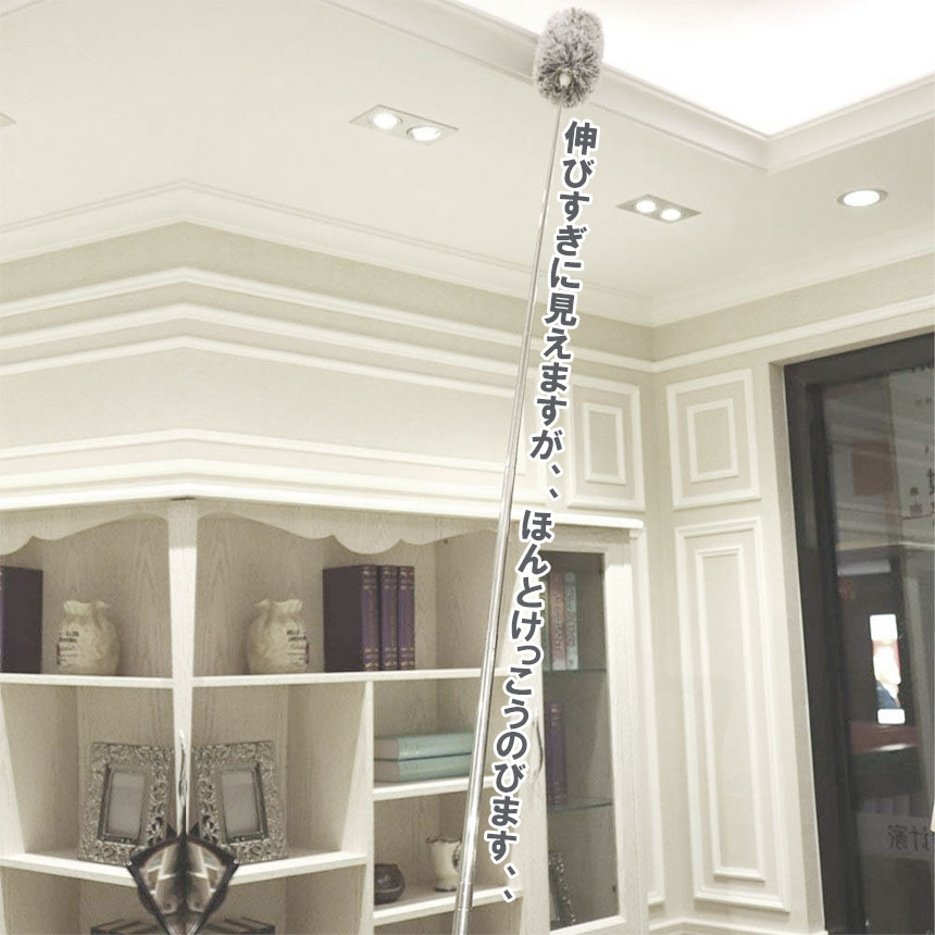 家、天井、ホテルのロビー、吹き抜け、シャンデリア、エアコン、車など、通常のモップで掃除できない場所。こんなところは、このほこりとりが一番おすすめです♪