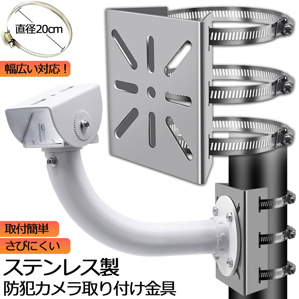 防犯カメラ ポール 取付金具 カメラ ブラケット スタンド ステンレス製 ハウジング 穴開け ビス止め 不要 監視カメラ ダミー ハウジング ブラケット円柱 角柱 屋外 設置 すぐ使える【1個】