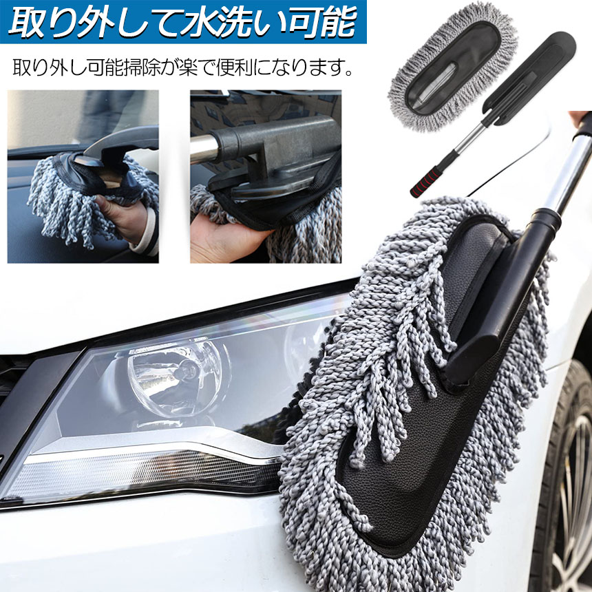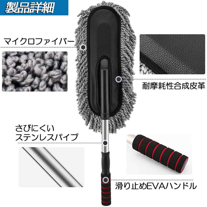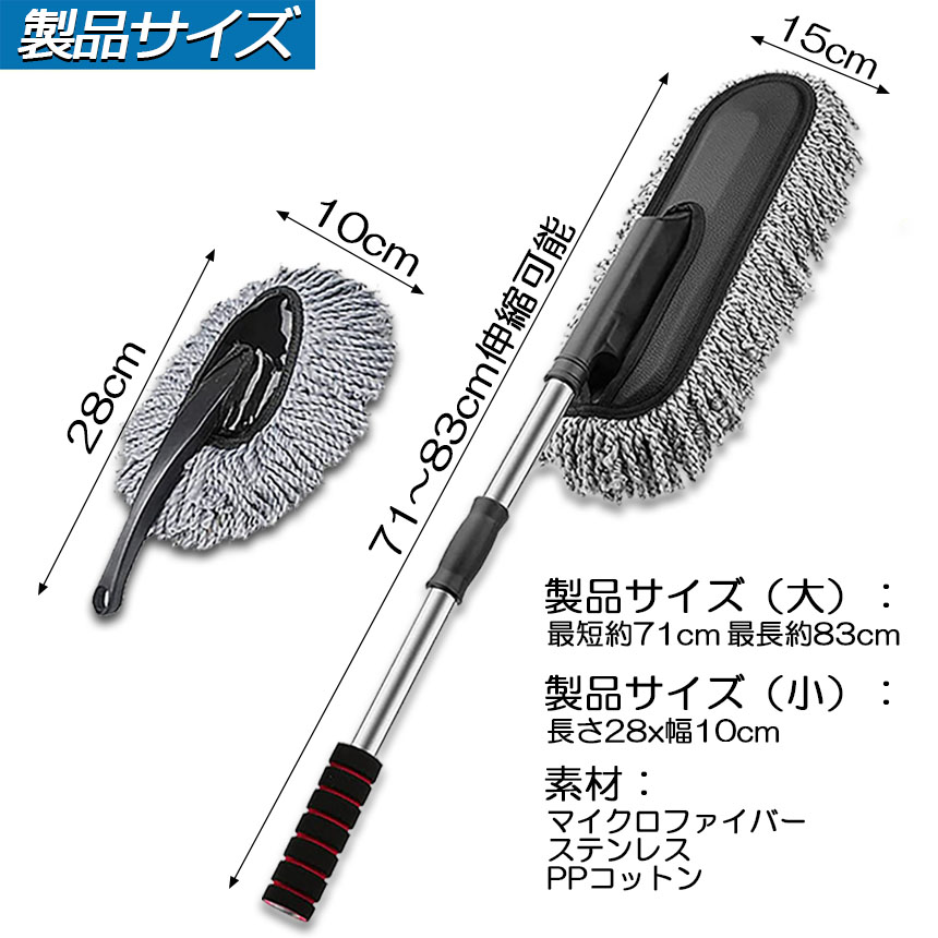 【お好みの長さに伸縮可能】伸縮幅は約71.cm~83cm。持ち手を伸ばすと最大83cmの長さに車のボディからルーフ等まで手の届きにくい箇所も楽にお掃除していただけます。