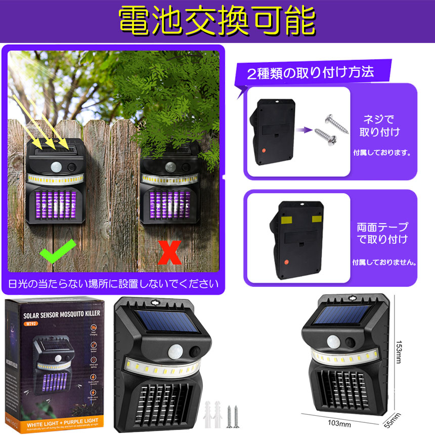 蚊取り器 殺虫灯 電撃殺虫器 ソーラーライト 16 LED センサーライト 蚊よけ 照明 虫除け コバエ取り ガーデンライト キャンプ ライト ledライト 人感ライト 玄関ライト 捕虫器<br>