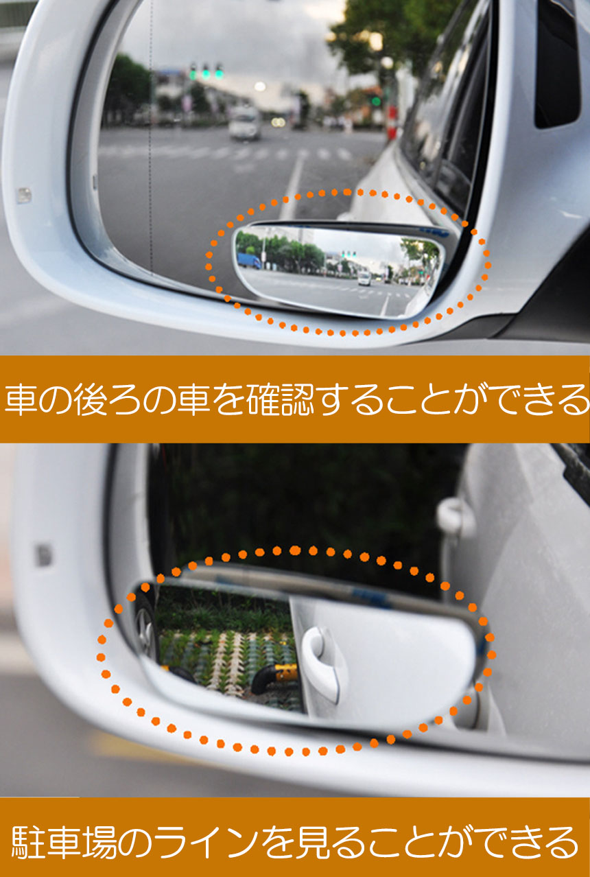 曲面ミラーでワイドな死角を実現,死角を補う広角凸面鏡補助ミラー