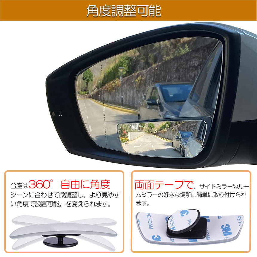 360° 角度調整自由自在,ブラインドスポットミラー,