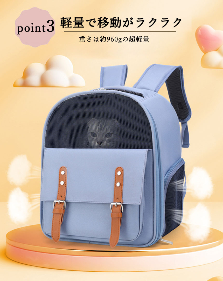猫ちゃんを入れても負担が少なく、移動がラクラクです。