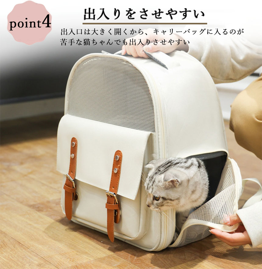 出入口は大きく開くから、キャリーバッグに入るのが苦手な猫ちゃんでも出入りさせやすく安心です。