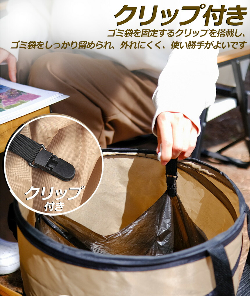 【大容量&ロック式デザイン】ニーズに合わせてお使いできます。大容量なので、頻繁に空にする手間も省けます。ゴミ袋を固定するクリップを搭載し、ゴミ袋をしっかり留められ、外れにくく、使い勝手がよいです