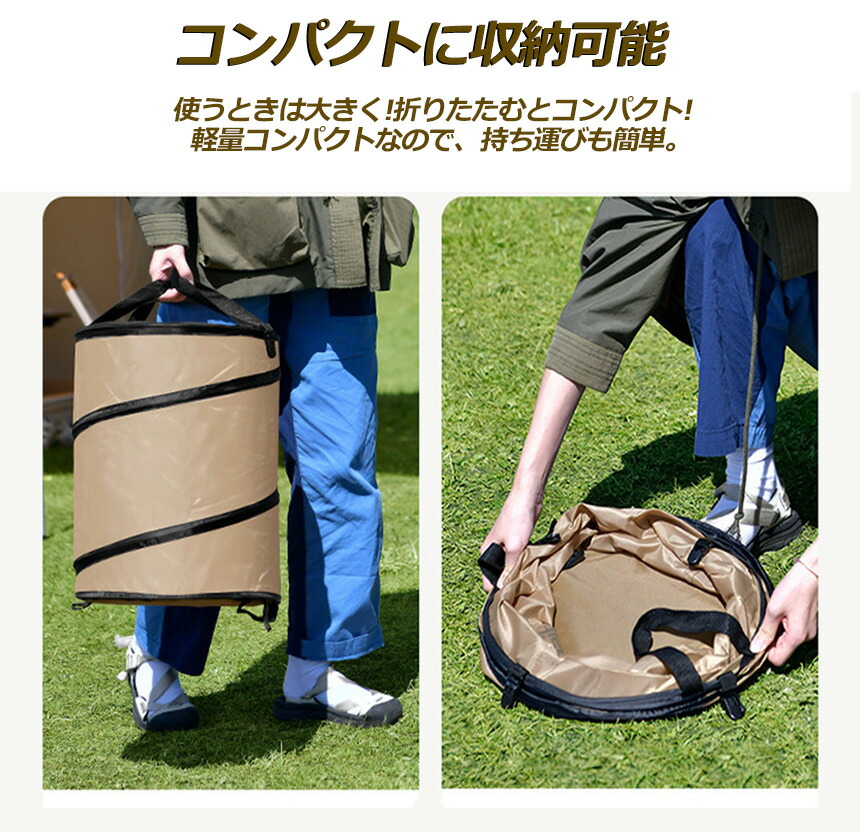 【上下ハンドル付き】本体の上部と下部に手持ちが付いており、ゴミを出すときに力をサポートしてくれ、運搬にも楽々に行えます。キャンプ、釣りなどのアウトドアシーンに便利にご利用頂けます
