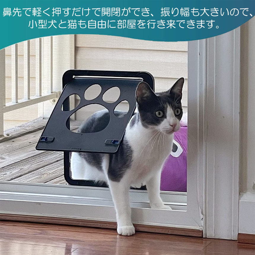 【行動範囲が広がる】:本製品は網戸専用ペットドアです、鼻先で軽く押すだけで開閉ができ、振り幅も大きいので、小型犬と猫も自由に部屋を行き来できます。慣れたら最高です、留守番に心配がなくなります。