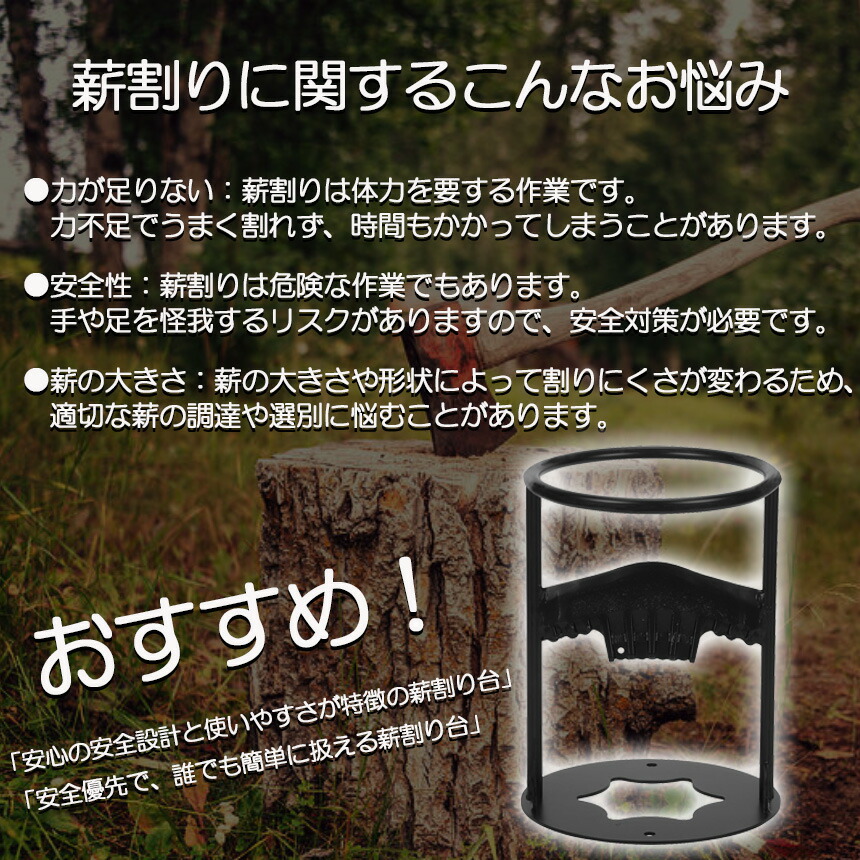 【商品内容】薪割り台 キャンプ用、材質 : 鋼、直径190(リング外径)×高さ310mm、重量 : 2.3kg