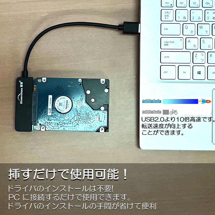 【ご注意】3.5インチハードドライブには使用できません、2.5インチのSSD、HDDのみ対応します。 ATA(IDE)、MSATA、およびM.2インターフェイスとは互換性がありません。ご購入前にハードドライブの種類をご確認ください。