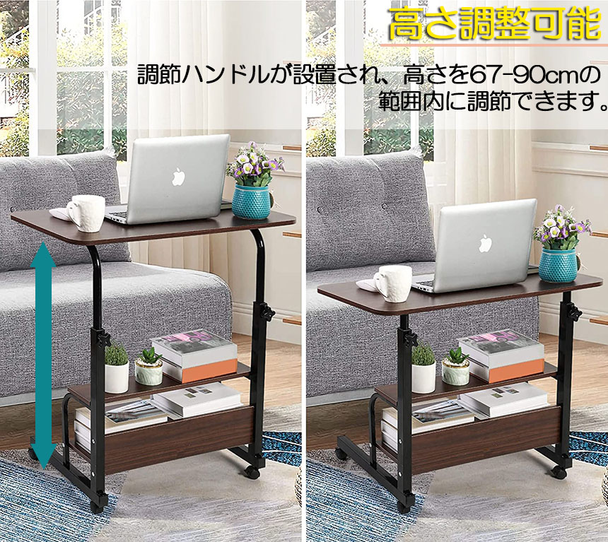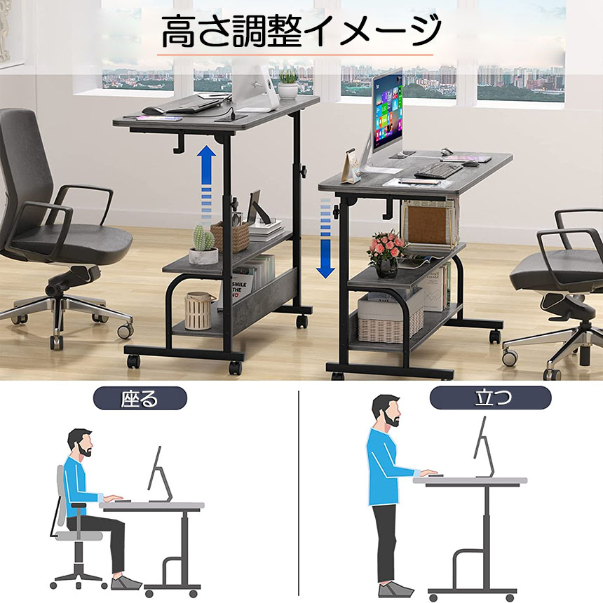 オフィスデスク スタンディングデスク オフィスデスク ベッド用テーブル パソコンデスク 昇降テーブル 天板 高さ調整 キャスター付き 安定性抜群 机 在宅勤務 <br>