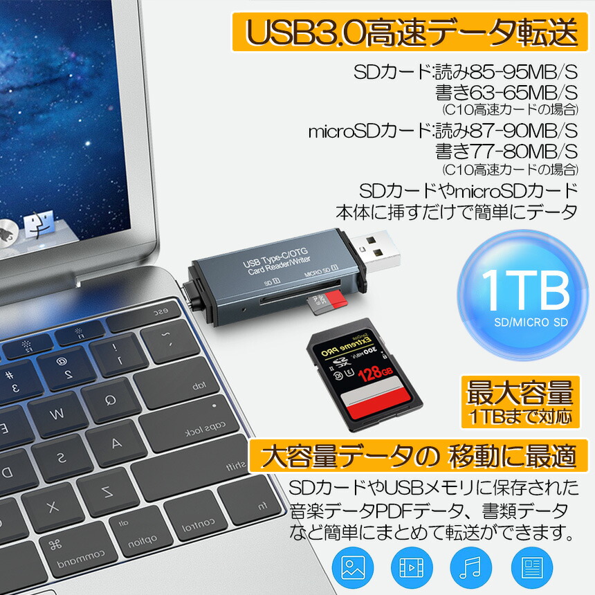 5. SDカードリーダー カードリーダー SDメモリーカードリーダー メモリ USB3.0 Type C マルチカードリーダー OTG SDHC SDXC SD Micro SDHC Micro SDXC MMC【1個】