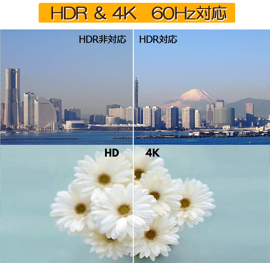 【HDMI 2.0搭載4K Ultra HD】4K 50 / 60HZ(YUV444)までの最高のビデオ解像度をサポートします。 HDMI 2.0b(18Gbps)HDCP 2.2およびDVI準拠をサポート。HDR10をサポート(HDR10互換性を確保するには、HDMI2.0認定ケーブルの使用をお勧めします)。