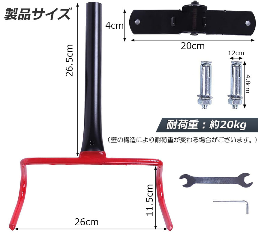 【高品質の素材】頑丈なスティール製で約20kgまでの自転車を支えることが 出来ますので、ショップでも自宅でも大活躍します。また、フックには保護用ラバーが装着され、自転車フレームへの傷つき防止できます。