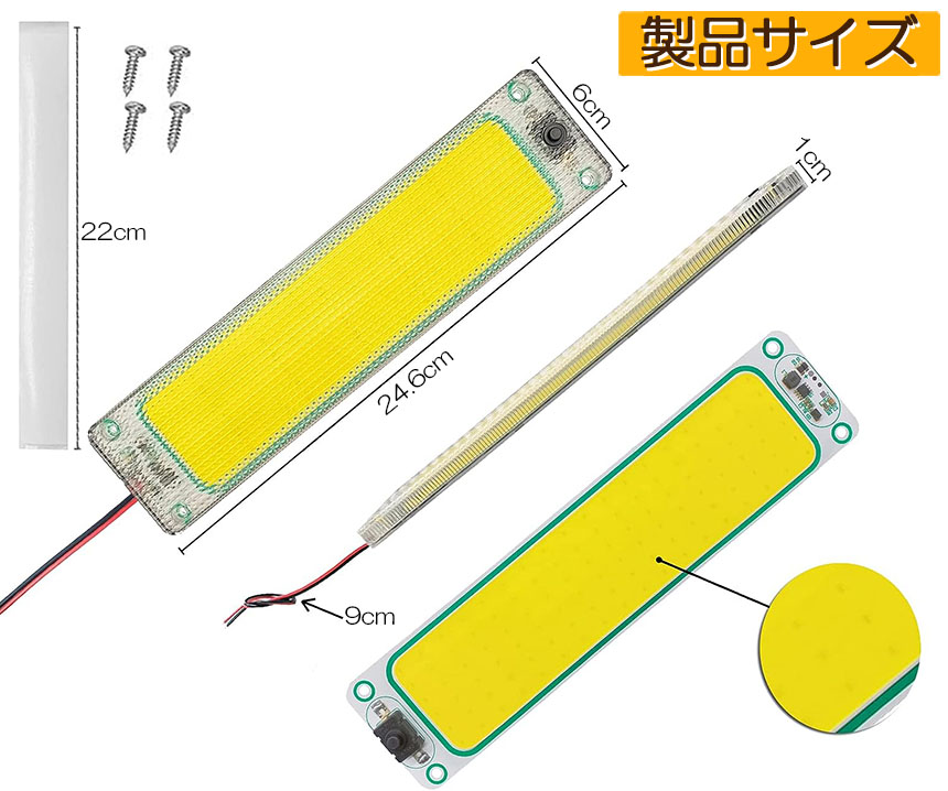 【商品仕様】電球色:ホワイト/電圧:DC12V~DC24V/使用寿命:約50000時間以上/LEDチップ:面発光COB素子 108連/サイズ:長さ246mm*幅60mm*厚さ10mm(LEDの中の厚さ:8mm)
