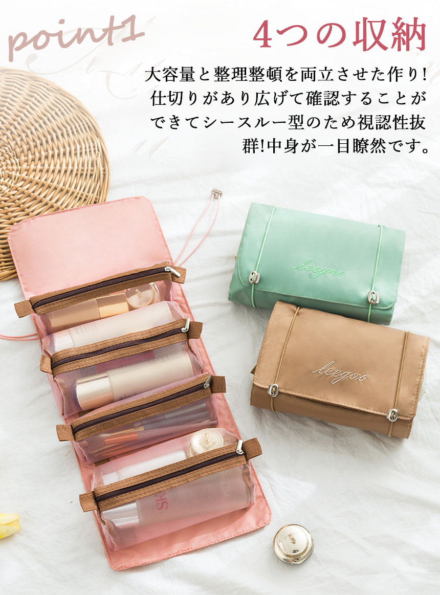 コスメからアメニティグッズまで、蒸れの心配なく収納ができます。