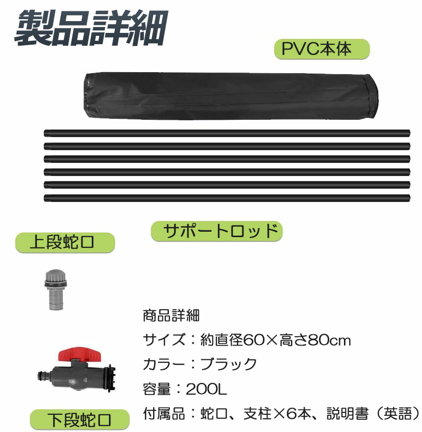雨水タンク 貯水タンク 折りたたみ式 200L ウォーターバケツ 洗車 水やり 雨水を貯めて節水可能 防災 屋外用 非常時 簡単設置 雨を貯めて節水<br>