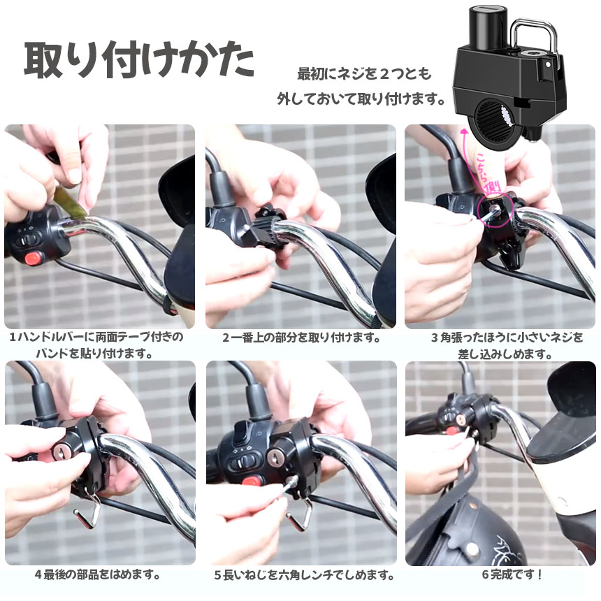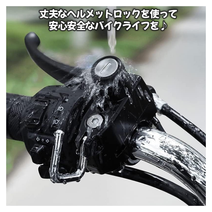 様々なバイクに対応した、簡単に取り付けられるヘルメットロックです。金属製で耐久性もあり盗難防止にもなります。