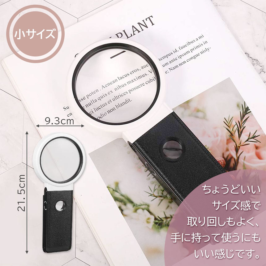 ・2種類のレンズ搭載で軽く、長時間で使用しても腕が疲れにくいです。6倍もしくは3.5倍の大レンズは新聞、雑誌、譜面、地図、観察など比較的大きなものを長時間見る時におすすめ!25倍の小鏡は宝石鑑定、骨董品の鑑定や1mm以下の物を見る時におすすめです。
