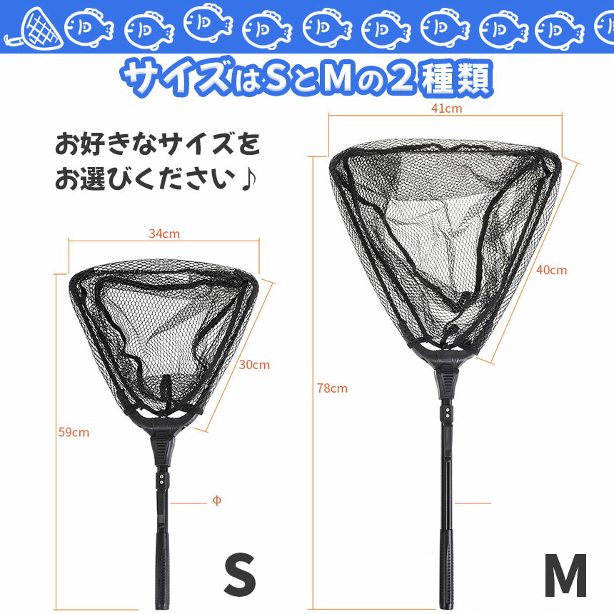 Sサイズ 約59x34cm(全長)、34x30cm(網) 約360g