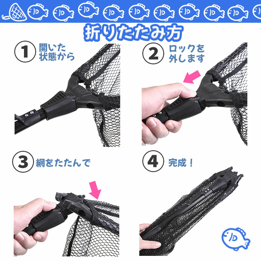 【折りたためる丈夫で軽量なたも網!】