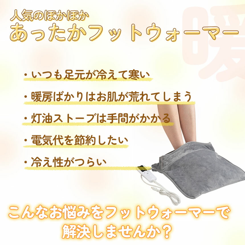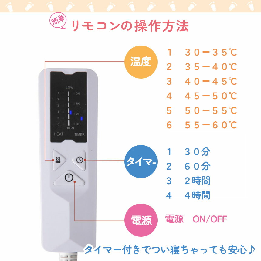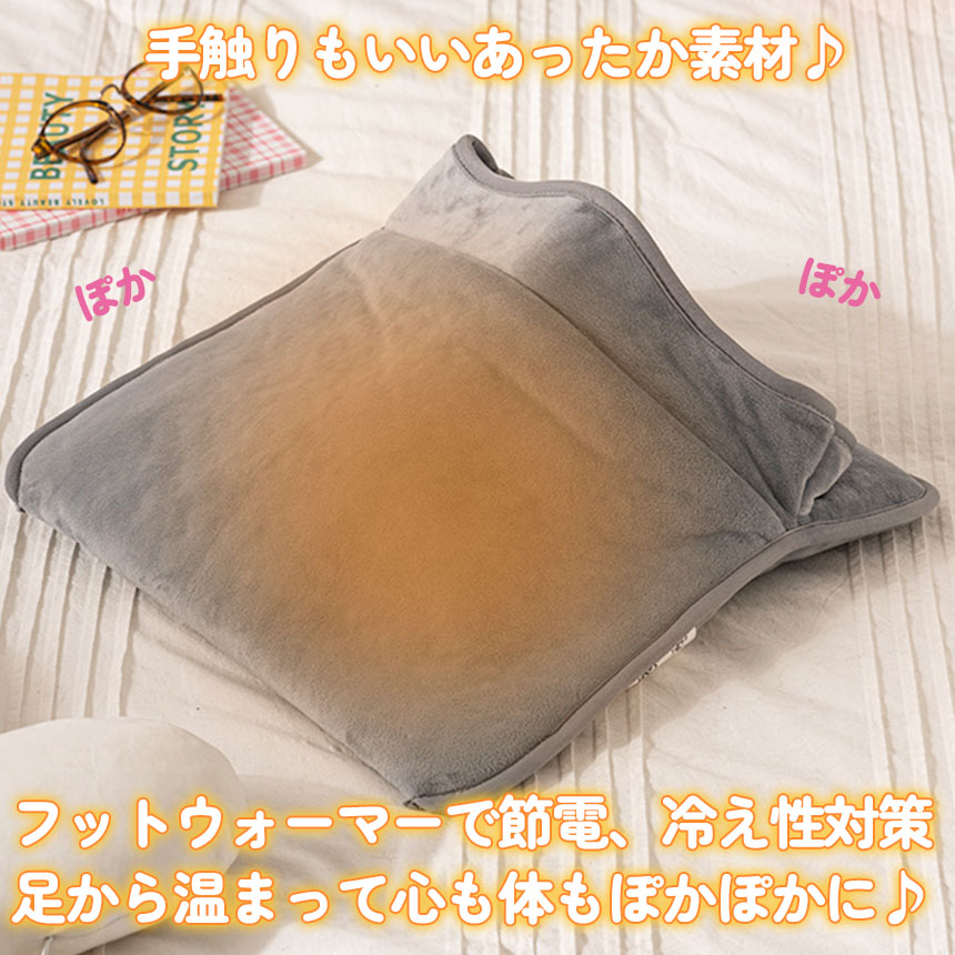 ふわふわ手触りのいい素材で、さわり心地が気持ちいいフットウォーマー。コンセント式の電気足温器で、USBタイプに比べて早く暖かくなります。約40度から60度まで加熱できるので、冷えてしまった足も、足元から身体まで暖かくポカポカに。6種類の温度モードがあるので、過熱や過寒を防止することができます。周りの温度に合わせ、お好みの温度モードを調節できる足温器です。適切な温度設定を選択することで、首、背中、腹部、膝、太もも、足に最大の快適さを提供します。