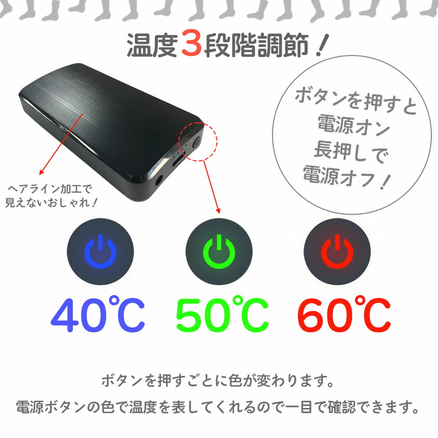 靴下だけではどうしても暖まりきらないそんな足元を、しっかりと40~60度で暖めてくれます。足元からの冷えを解決してくれる、