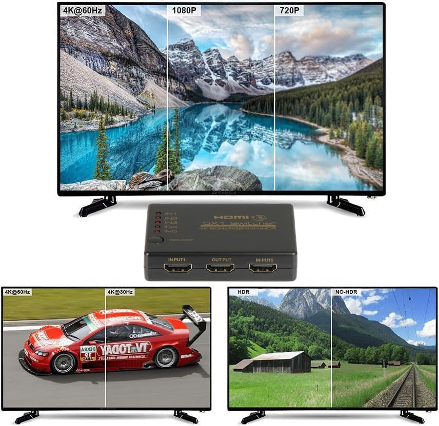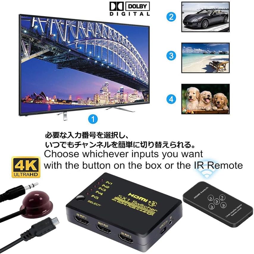 【最新HDMI2.0バージョン&HDCP2.2】最新HDMI2.0バージョンの切替器で、HDCP2.2に対応します。4K x 2K @60hz HDRの高画質映像を表示することができます。3D/480P/720P/1080I/Full-HD 1080P/2160Pなど同時に対応します。ビデオ出力最大速率:18 Gbps/600 MHZ、カラー表示フォーマット:RGB(YUV 4:4:4)。高性能、遅延なし、画像と音質の損失ない映像を楽しめます。(注意:ハイビジョン4 Kの画面を楽しむために、標準のHDMI 2.0ケーブルを使用してください)。