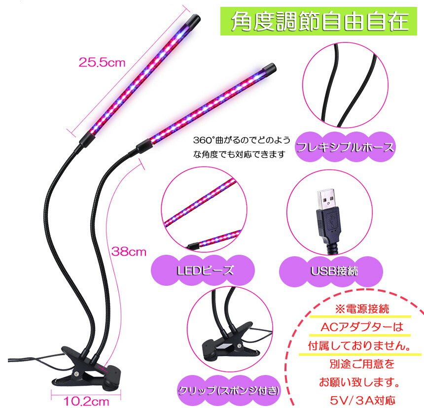 【 USB充電口・安定性UP・省エネ】充電口の設計、オフィスや家庭用により多く便利です。ランプヘッド回路を強化・改良し、明るさをより安定させています。植物育成ライト定格消費電力(40W),LED使用で電気代節約、経済的LEDなので、発熱量が少ないし、省エネルギー低コストで植物を育てます。また、従来蛍光灯の約4~8倍も寿命が長くなります。