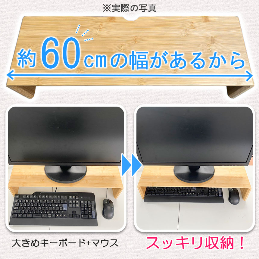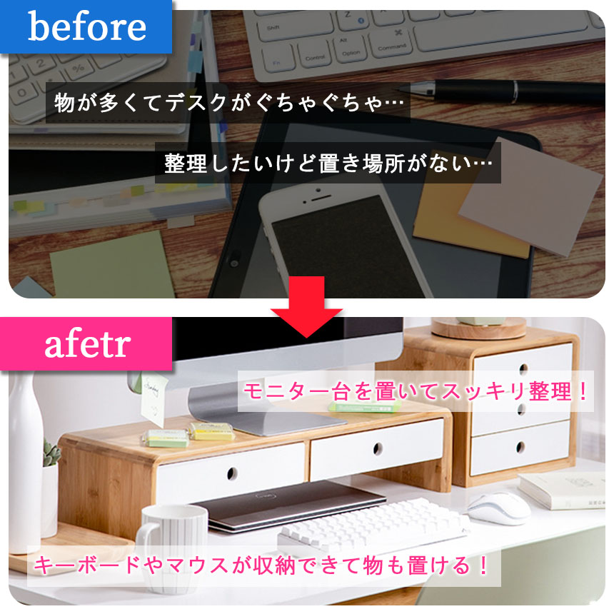 モニター台を使用すると下にキーボードやマウスを収納したり、上には小物類を置くこともできます!