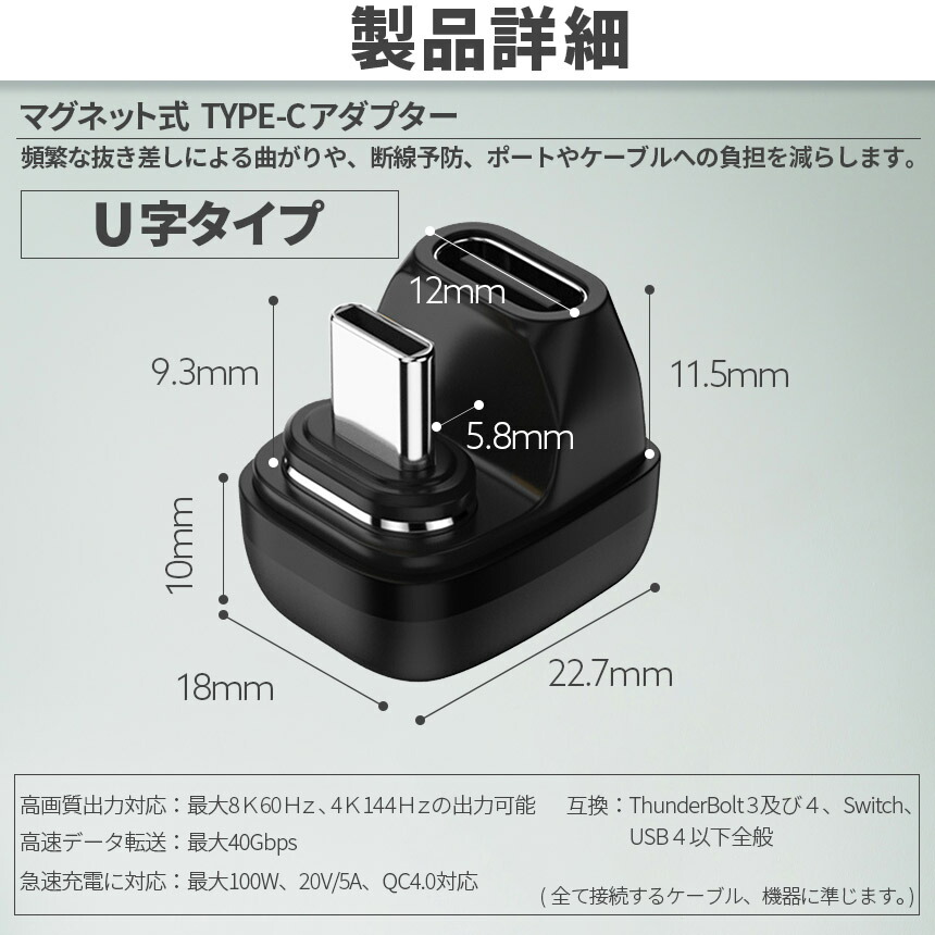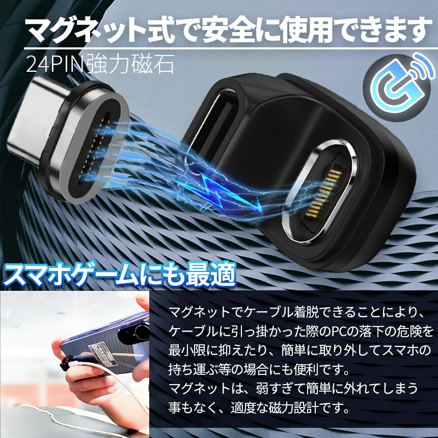 【TYPE-Cケーブルをマグネット式、180°方向転換できる高性能アダプター】