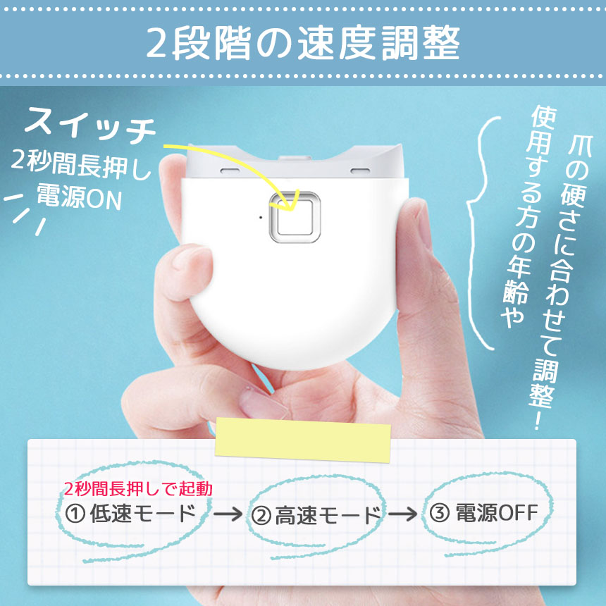 【電源のつけ方・2段階速度調節】