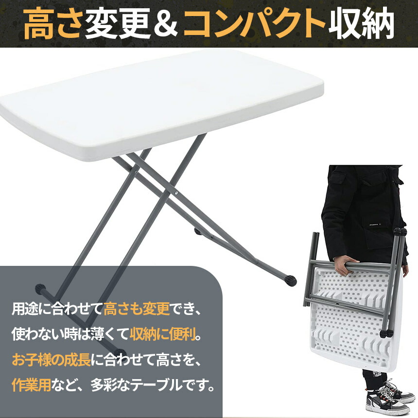 普段はしまっておいて、作業時など必要な時に取り出して使用したり、お子様の成長に合わせて高さを変えたり、頑丈で取り回しのいいテーブルです。