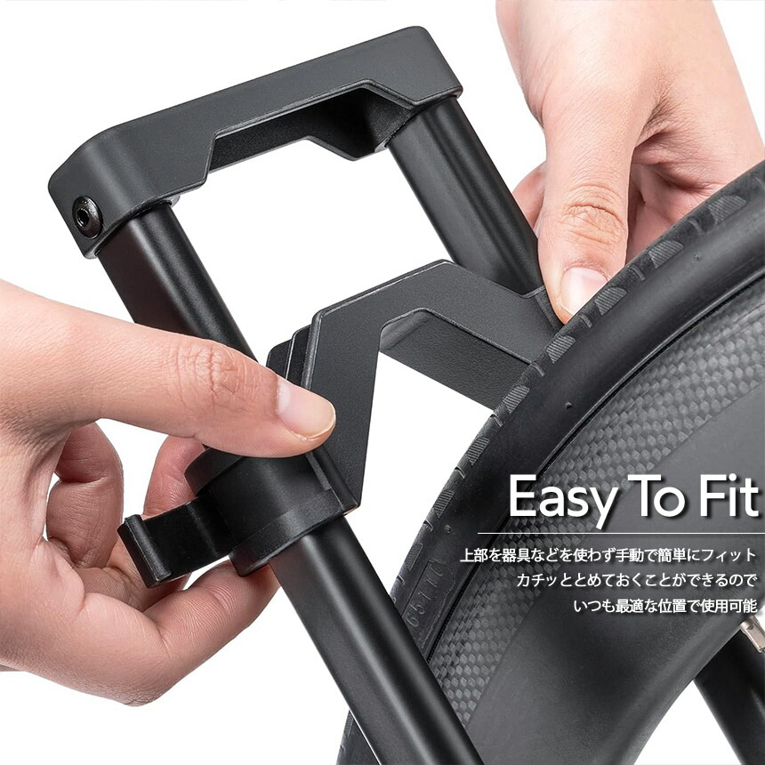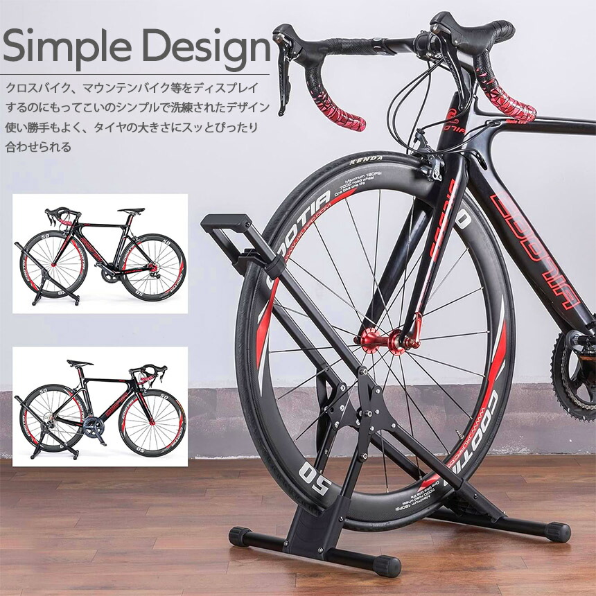 クロスバイク、マウンテンバイク等をディスプレイするのにもってこいのシンプルで洗練されたデザイン。使い勝手もよく、タイヤの大きさにスッとぴったり合わせられます。室内外問わず、どこでも持ち運んで利用できます。