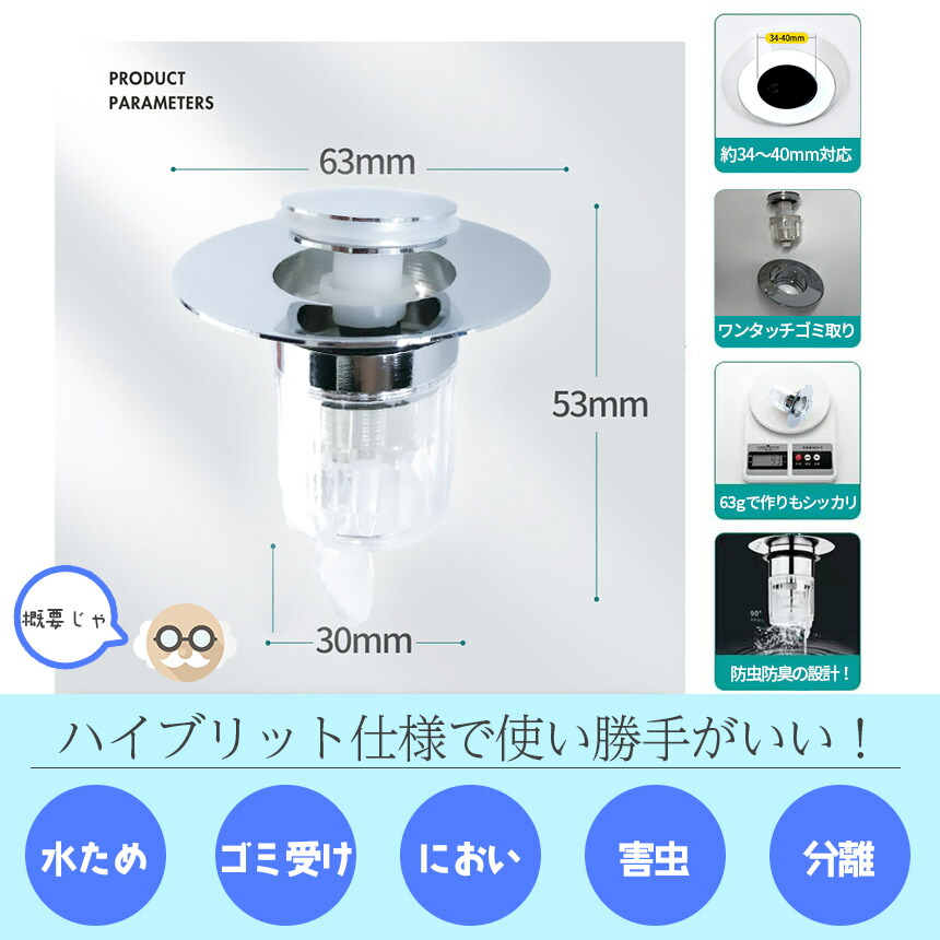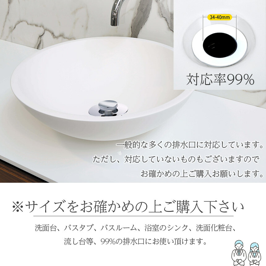 対応:排水口のはめ込み部分:34mm~40mm