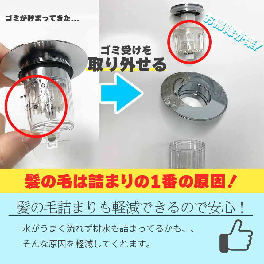 また、取り外せるゴミ受けが内部にあり、髪の毛詰まりも安心。髪の毛は、排水口詰まりトラブルの1番の原因...しっかり対策しておきたいものです。
