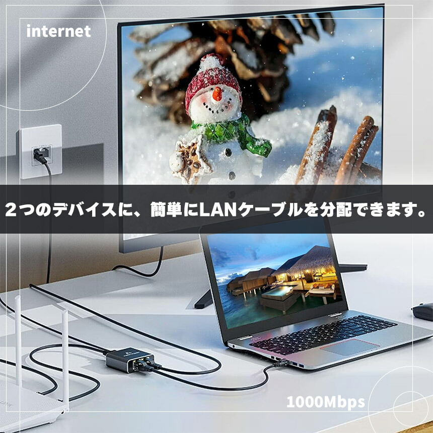 主に、配線不足の問題を解消してくれる製品です。コンパクトなので邪魔にならず、外出先でも簡単に2つのパソコンをLAN接続で使用したり、安定した同時使用ができます。
