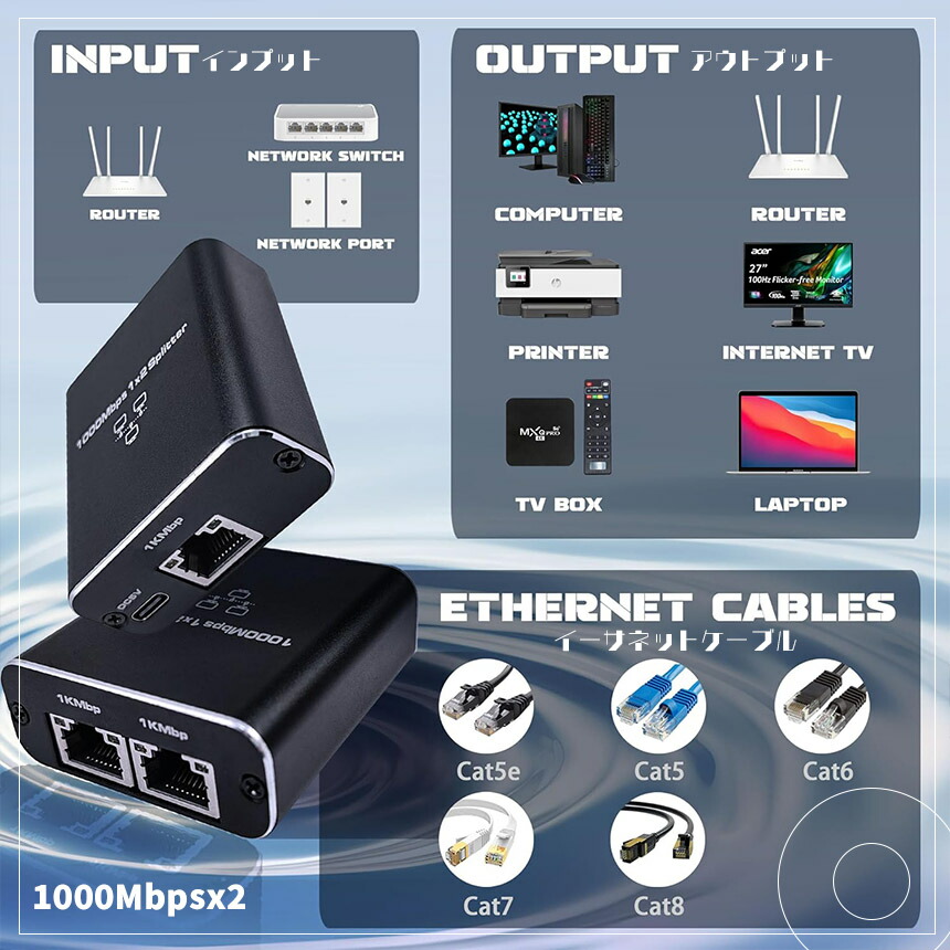 ※スプリッター本体と電源ケーブのセットです。LANケーブルは付属しません。