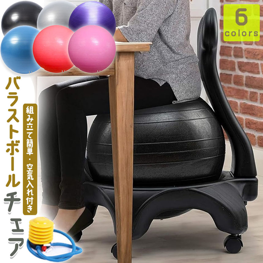 【組み立て簡単】取り付けは非常に簡単です。椅子のベースを組み立ててキャスターを取り付け、付属の空気入れポンプでボールを膨らませて椅子に固定するだけです。一度空気を満杯に入れていただいて後に、もう一度空気を抜いていただき、再度膨らませる必要がある場合もございます。