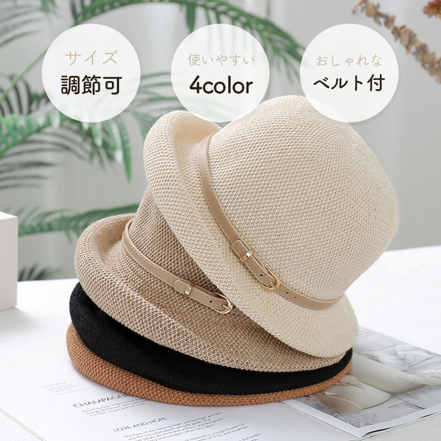 サイズ調整テープ付き サイズ調節 オシャレ 可愛い 女性 ブラック アイボリー ベージュ ブラウン 小顔効果 ぼうし ツバ<br>