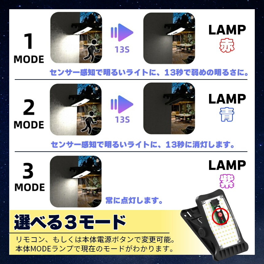 ・センサーなど3モードの照明モード