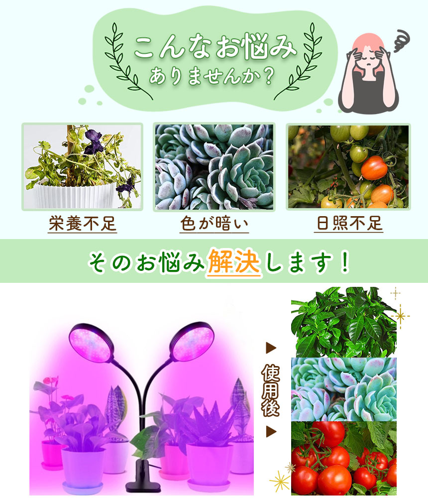 光合成を促進し、野菜や観葉植物を元気に育てます。