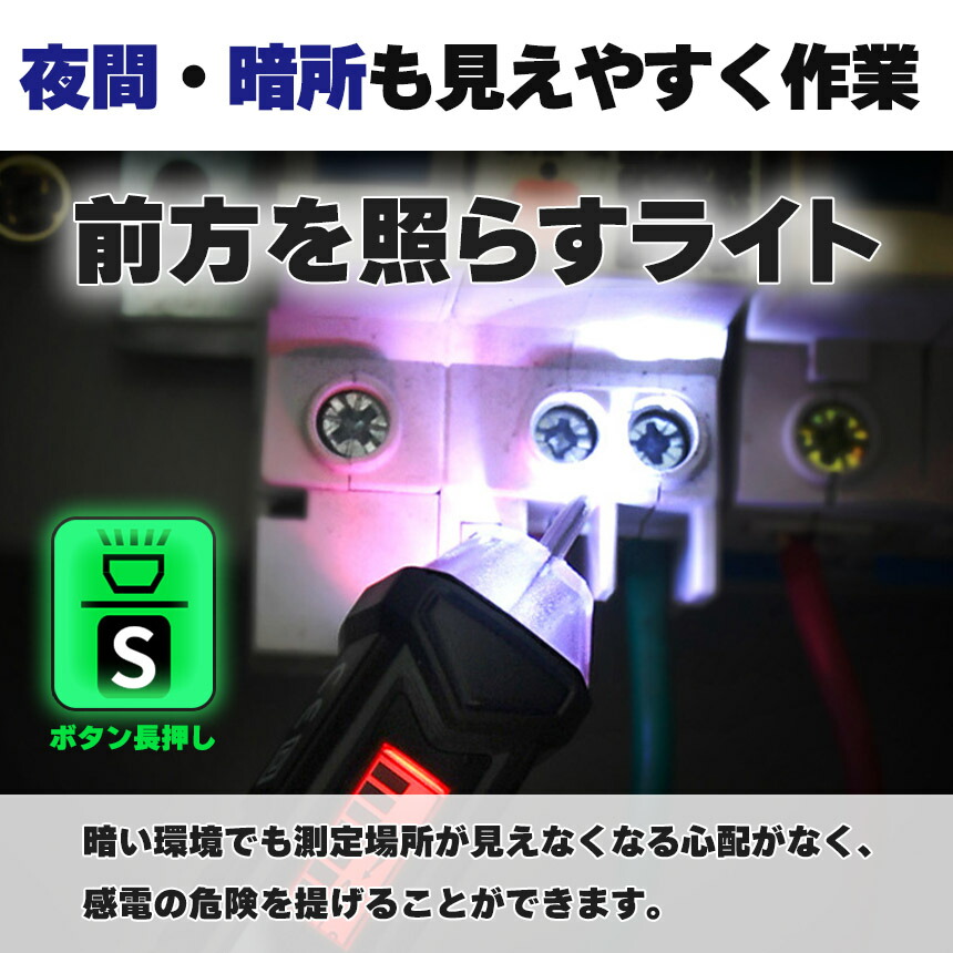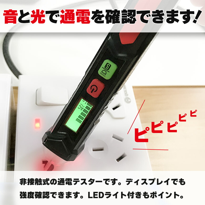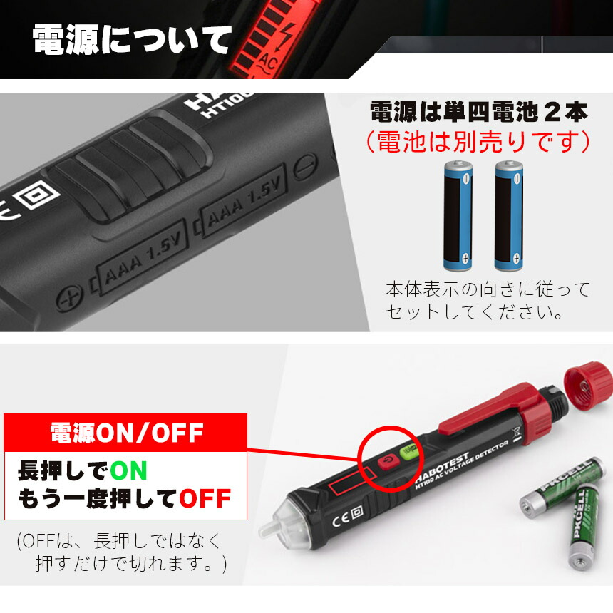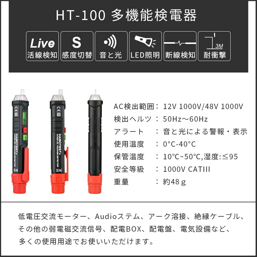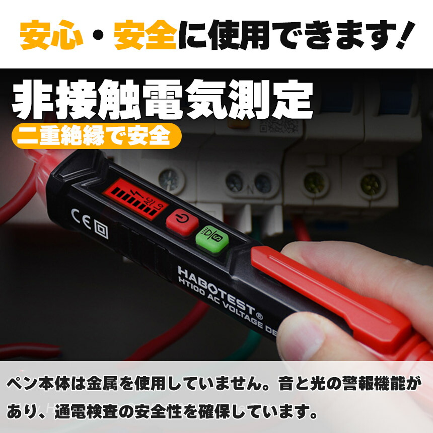 非接触検電テスターペン、AC48V-1000V、AC12-1000V切り替え可能で、音と光で通電をお知らせ