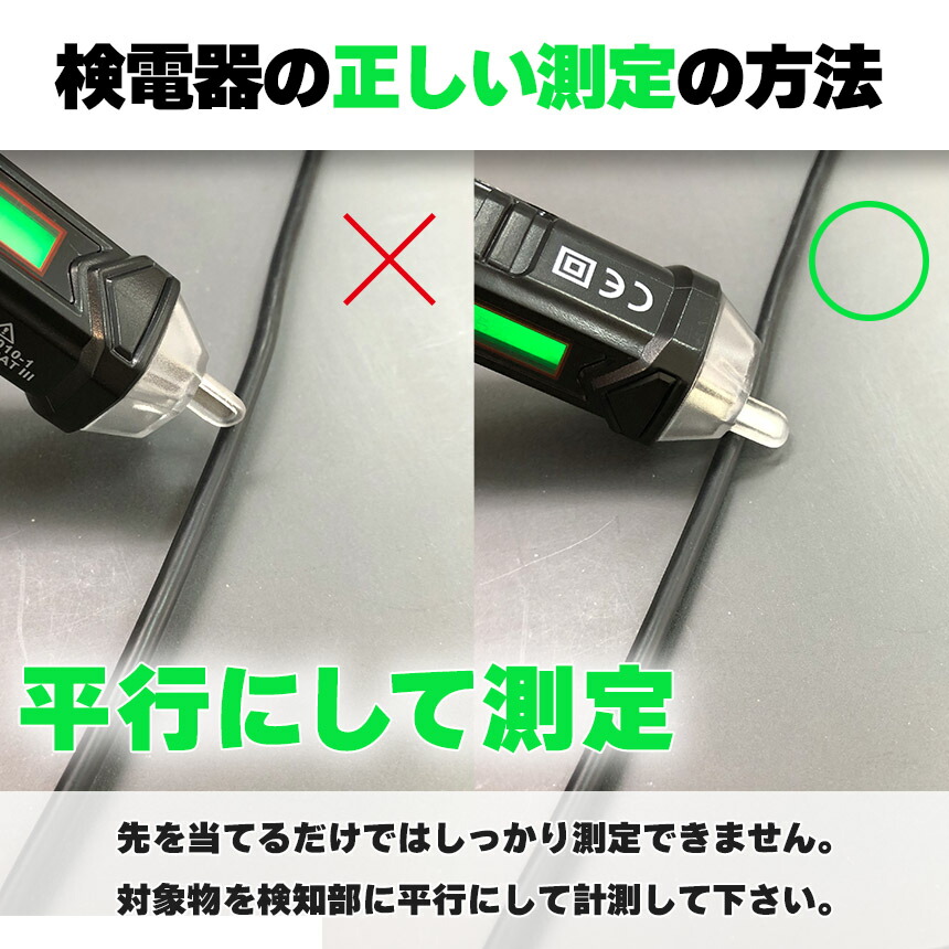 電圧はハイモード12~1000V、ローモード48~1000Vの間で使用可能、測定カテゴリCAT III 1000Vです。90V以上とわかっている場合はローモードでのご使用をお勧めします。(感度が高すぎると近くの物との干渉がでる可能性があるため)。住宅所有者、メンテナンス担当者、ご自宅で簡単に安全に測定を必要とする人に最適です。