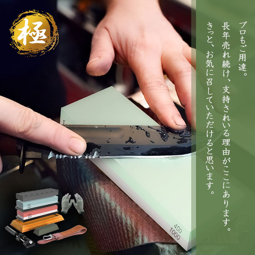 両面砥石は中砥石「400/1000」と仕上砥石「3000/8000」が揃ったセットになります。