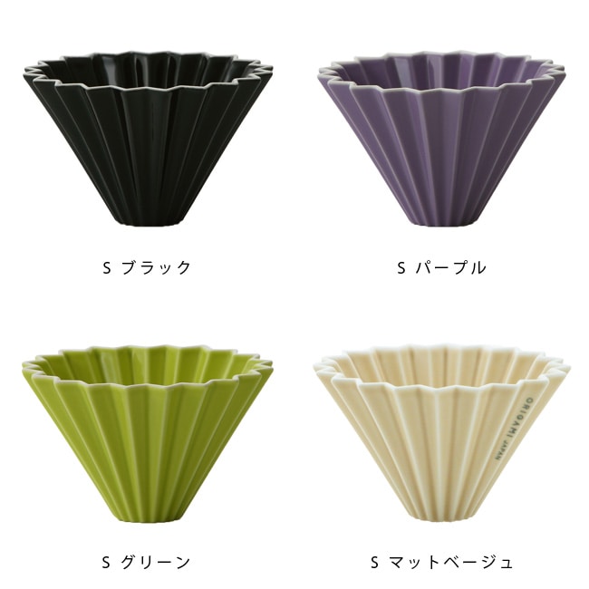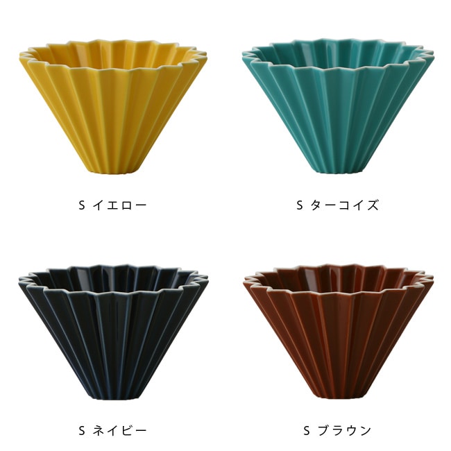 鮮やかなカラーリングと縦溝がまるでオリガミを折ったようにみえるORIGAMIのドリッパーSサイズとドッリッパーホルダーのセットです。