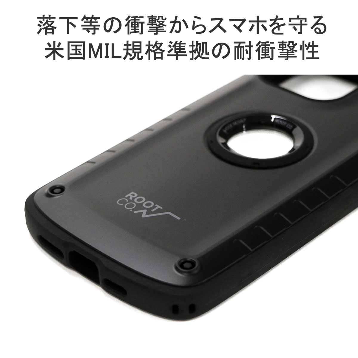 非常にタフな本体は、スマートフォンを落下等の衝撃から保護します。(米国環境耐性試験「MIL-STD-810G 516.6Procedure 4」の耐衝撃試験に準拠)さらにケースの角のTPUを厚くすることで、落下時の衝撃を吸収してくれます。また背面にメタルプレートを内蔵している為、マグネット式のカーマウントに対応しています。