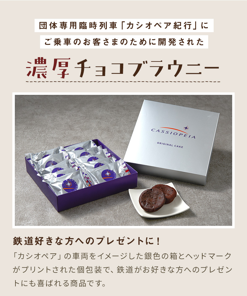 団体専用臨時列車「カシオペア紀行」にご乗車のお客さまのために開発された濃厚チョコブラウニー
